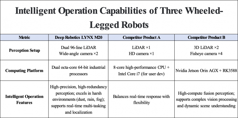 Faced with numerous benchmark products on the market, how should enterprise customers evaluate their core strengths? Recently, an in-depth industry review selected three popular industry-grade products with comparable positioning, including LYNX M20 (the other two are referred to as Product A and Product B). The evaluation conducted a horizontal comparison across four dimensions: hardware robustness, intelligent perception, secondary development potential, and deployment breadth. The results reveal that, the real-world performance in extreme working conditions and scenario deployment capabilities have become the sole standards for measuring product maturity.